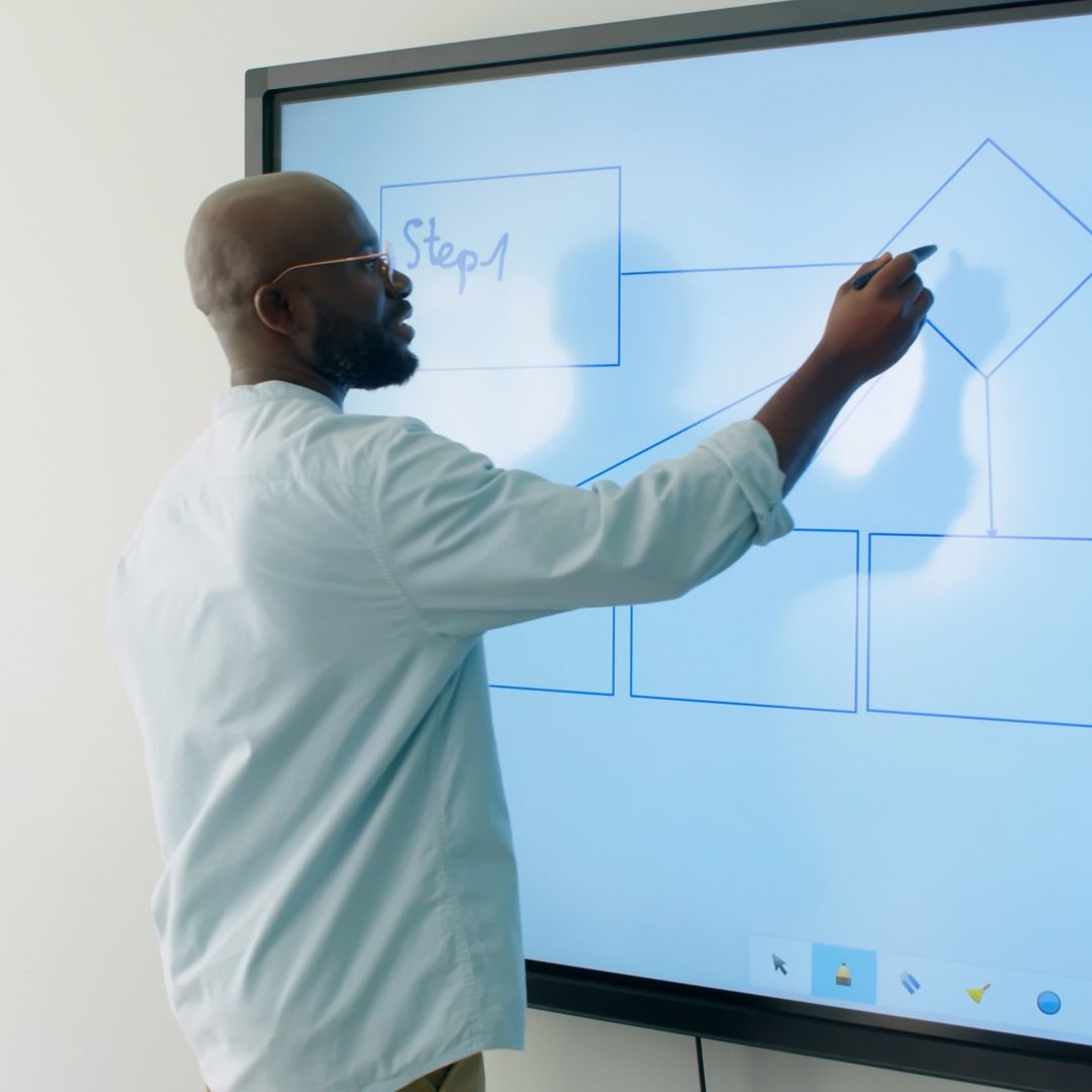 A room that promotes the development of vocational skills in members aged 10-18 by providing opportunities for youth to become certified in specific technology software through instruction with an Interactive Flat Board.